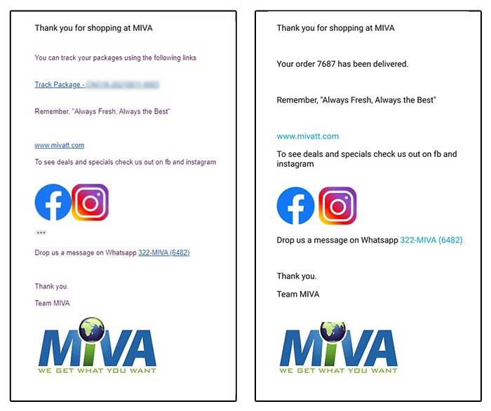 Customers receive 2 automatic notifications straight to their email: